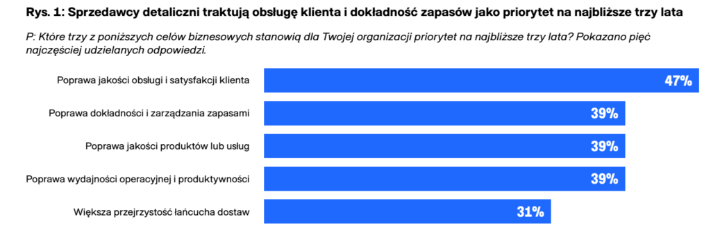 Raport zauważa, że szybki rozwój AI wspiera organizacje, które dopiero zaczynają usprawniać procesy. Detaliści coraz częściej widzą w niej sposób na zwiększenie dokładności prognoz i wskaźników popytu, co było szczególnie istotne po doświadczeniach z pandemii.