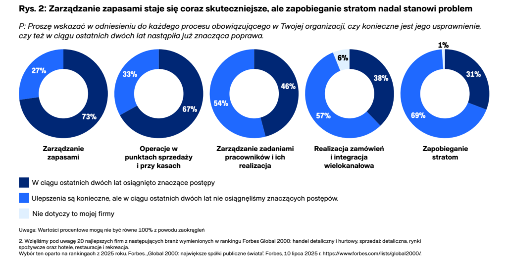 O ile zarządzanie zapasami uległo poprawie, o tyle zapobieganie stratom pozostaje problemem dla ponad połowy sprzedawców (57% deklaruje konieczność usprawnień).